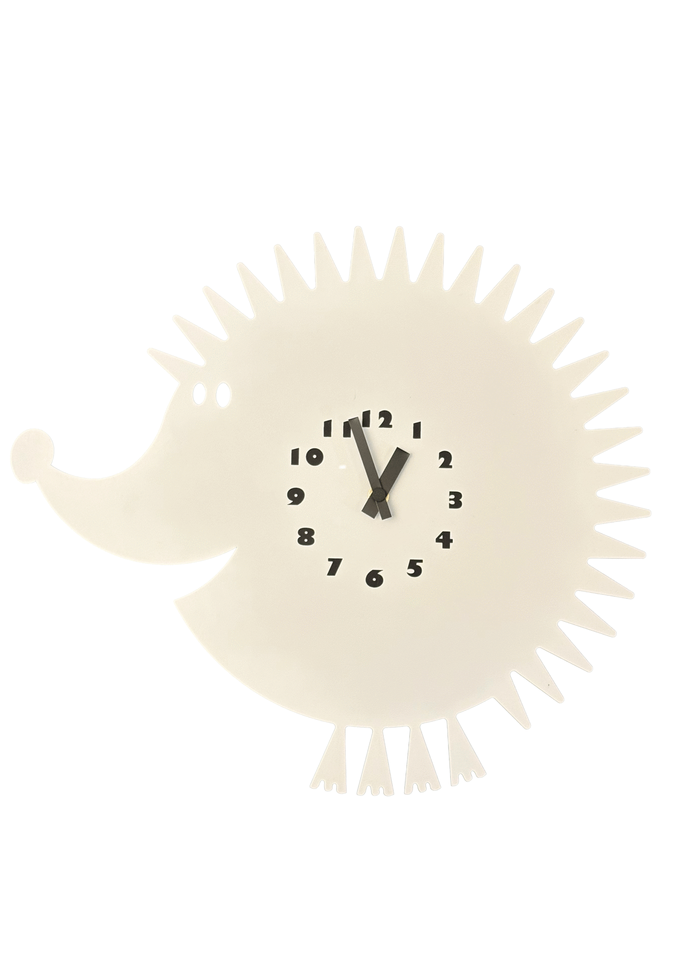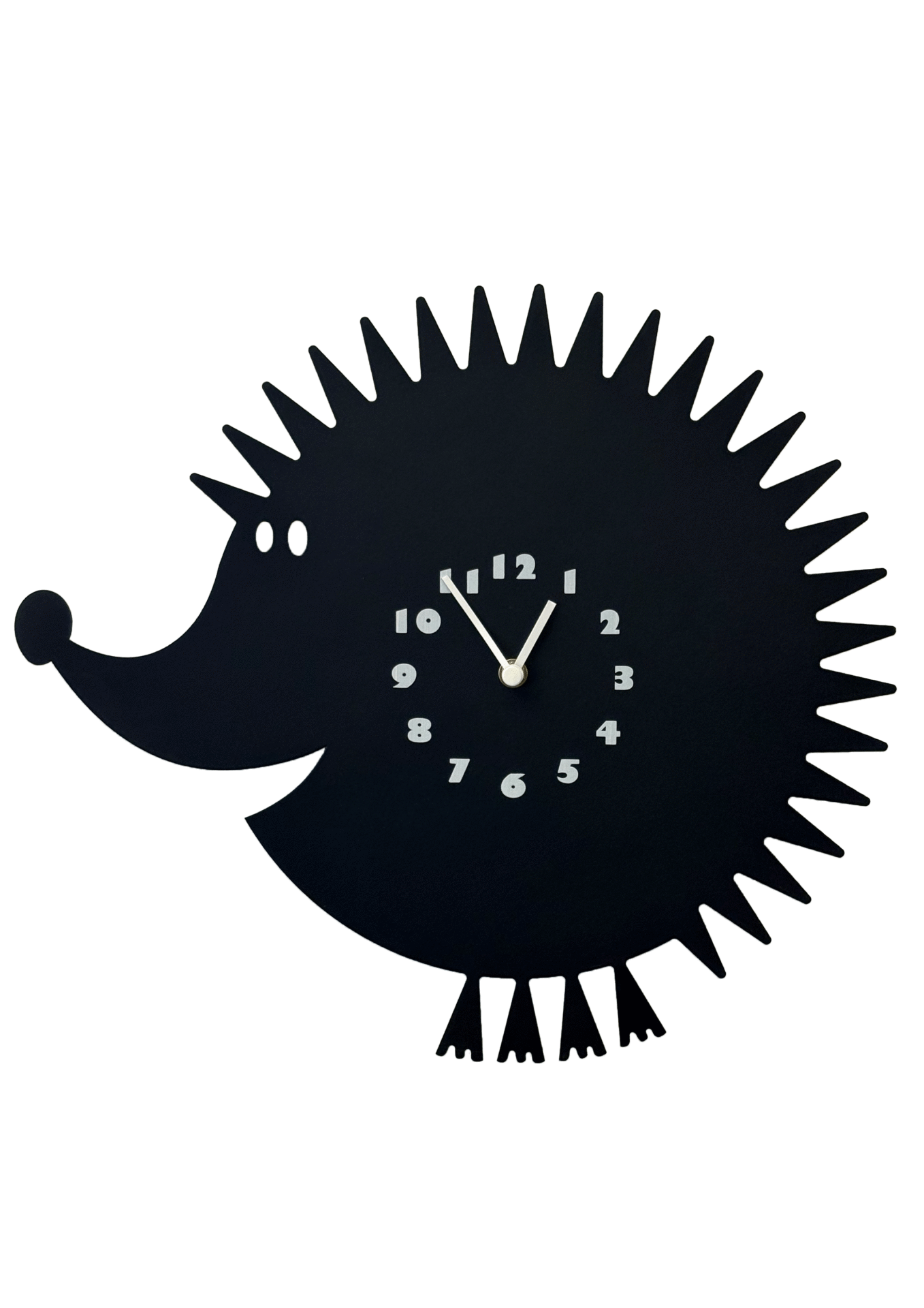 Horloge murale en forme de hérisson, au design graphique et minimaliste.