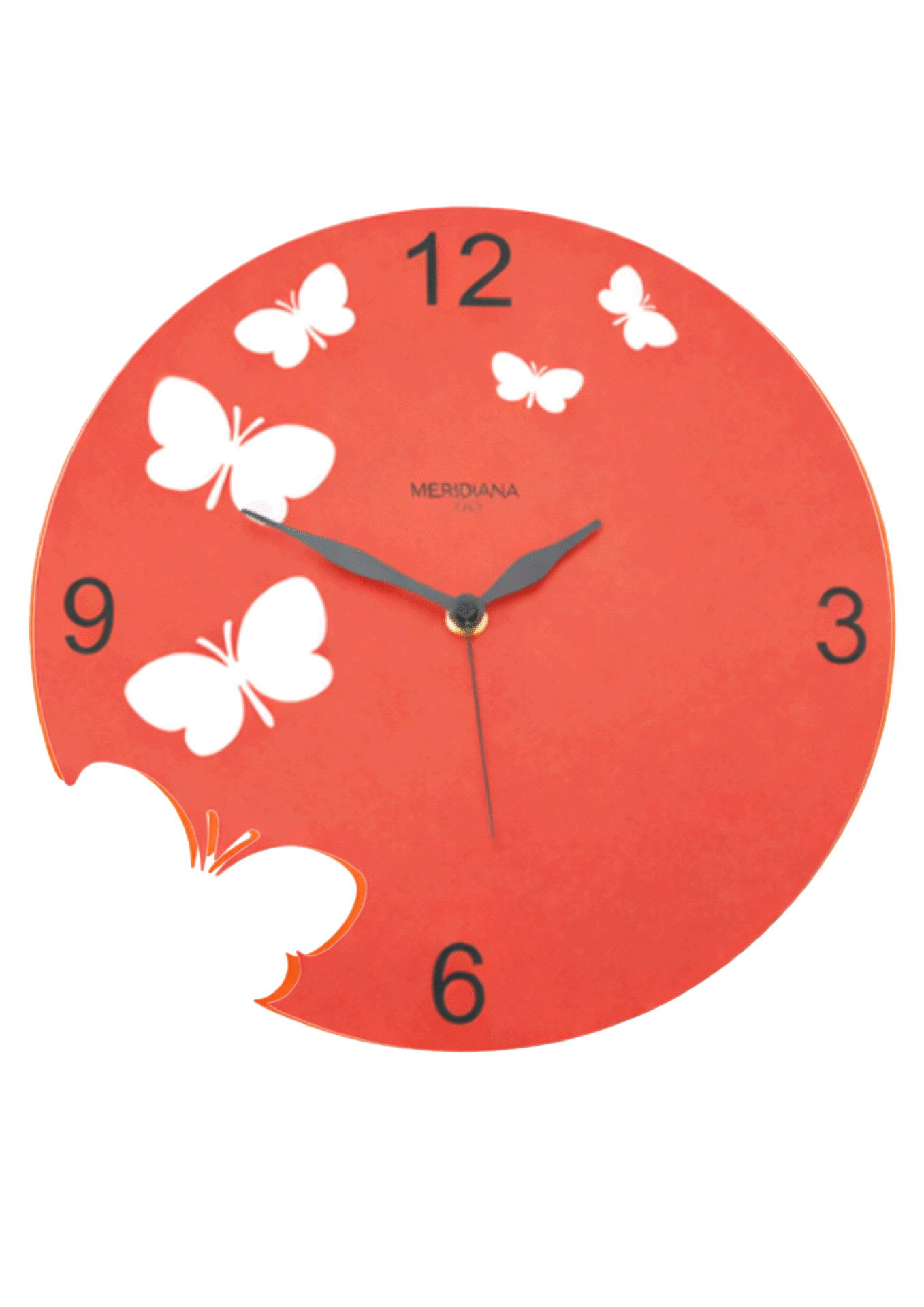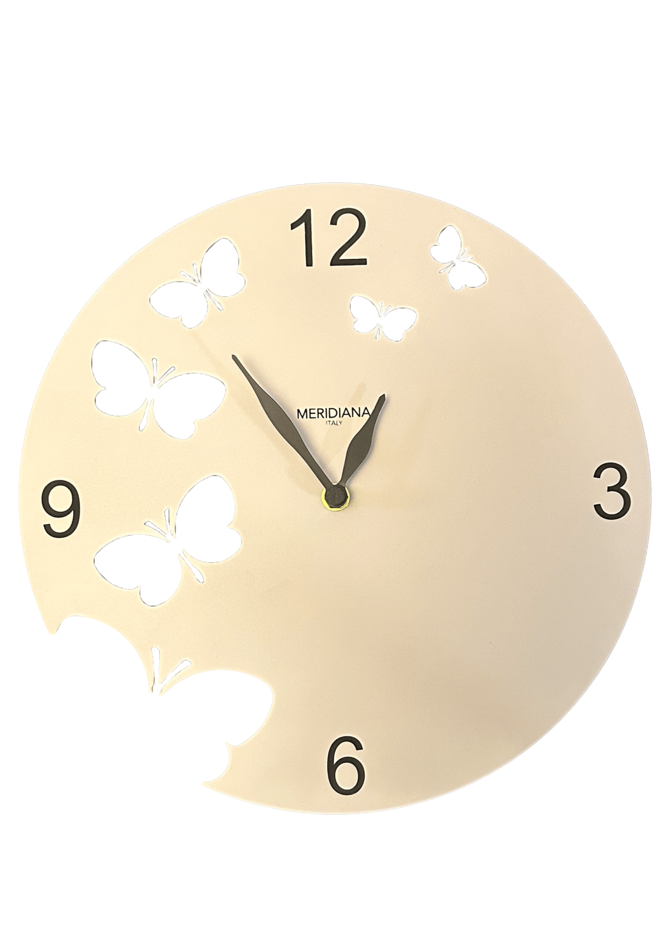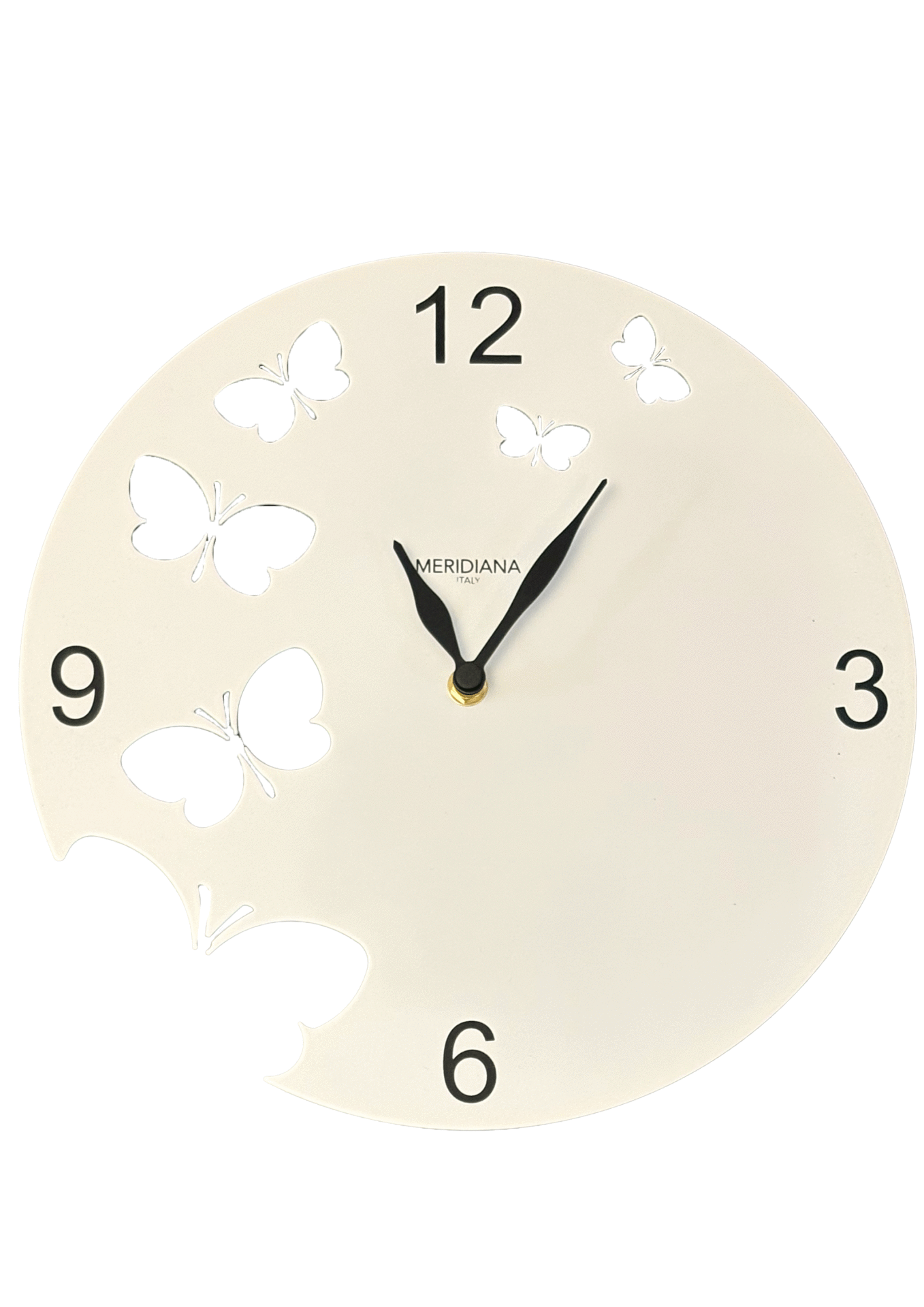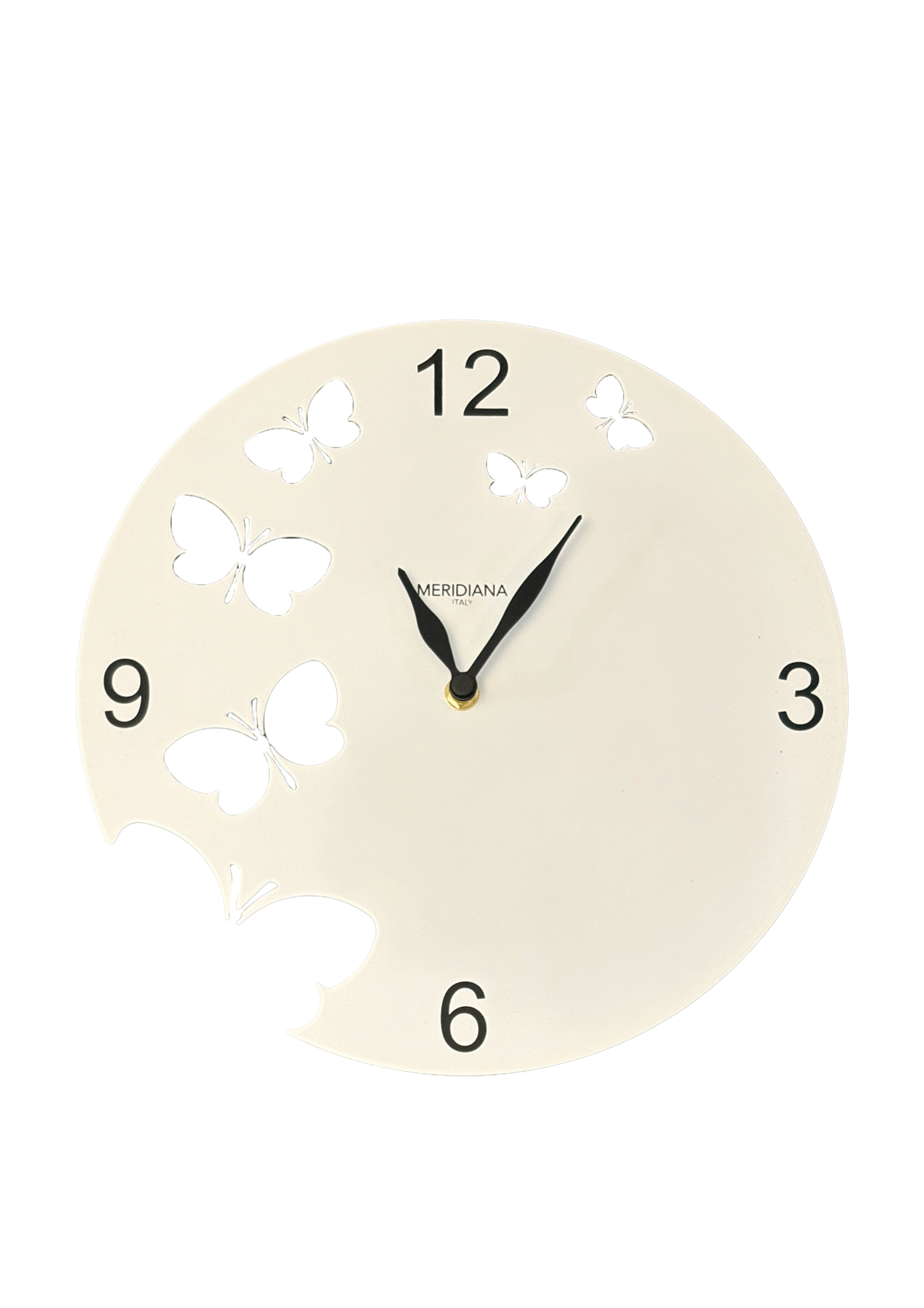 Horloge murale design avec découpes papillons laissant apparaître le mur. Un objet décoratif élégant, léger et contemporain pour sublimer vos murs.