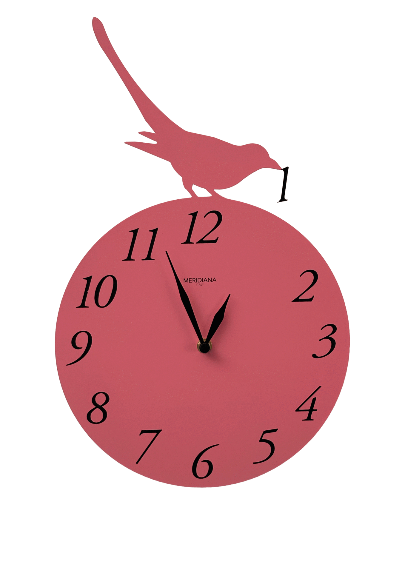 Un cadran de couleur, presque vibrant, surmonté d’un oiseau délicatement posé… comme s’il venait d’atterrir juste pour vérifier l’heure.