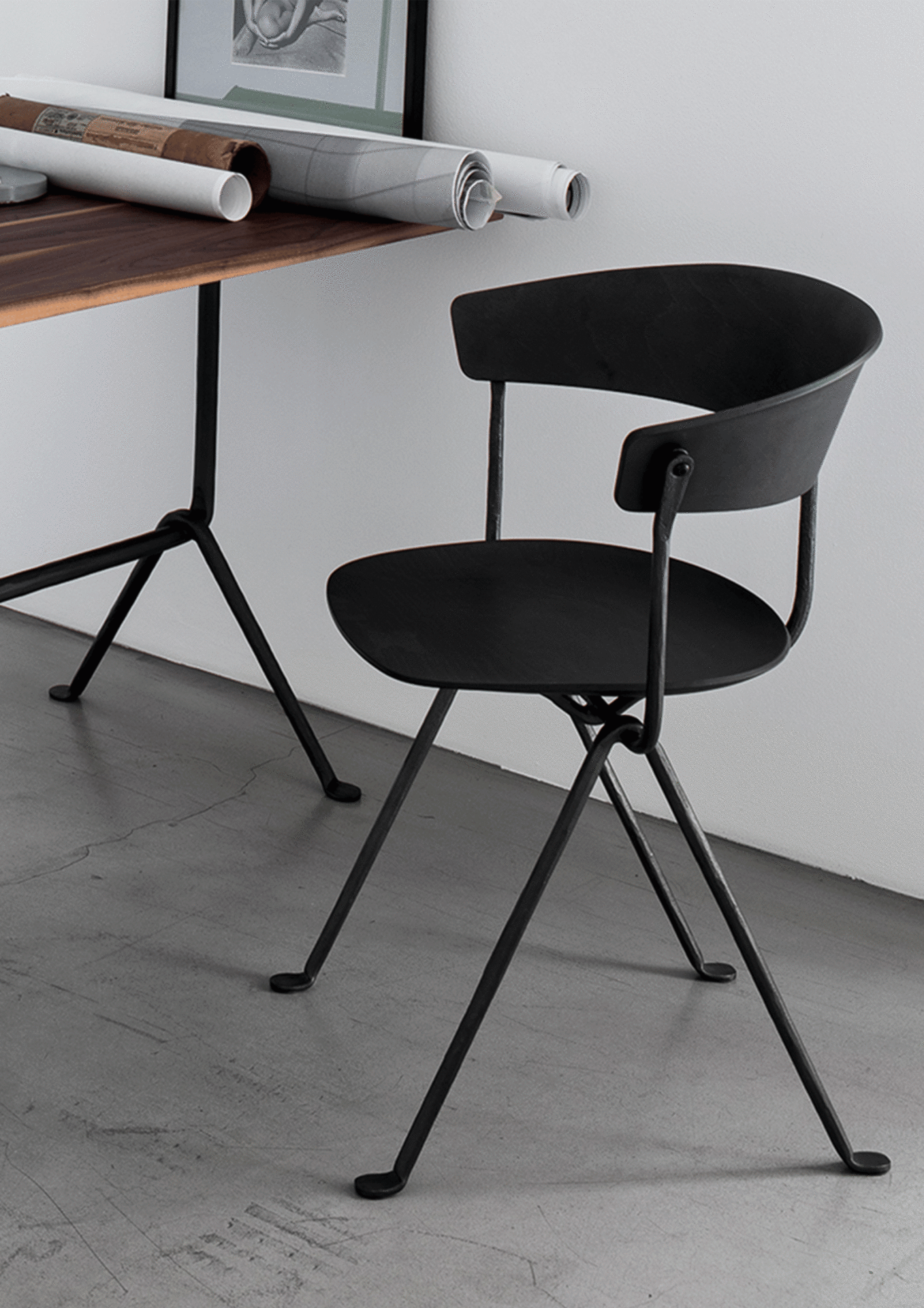 Structure fine, assise noire mate — une pièce qui joue la carte du confort visuel et du caractère discret.