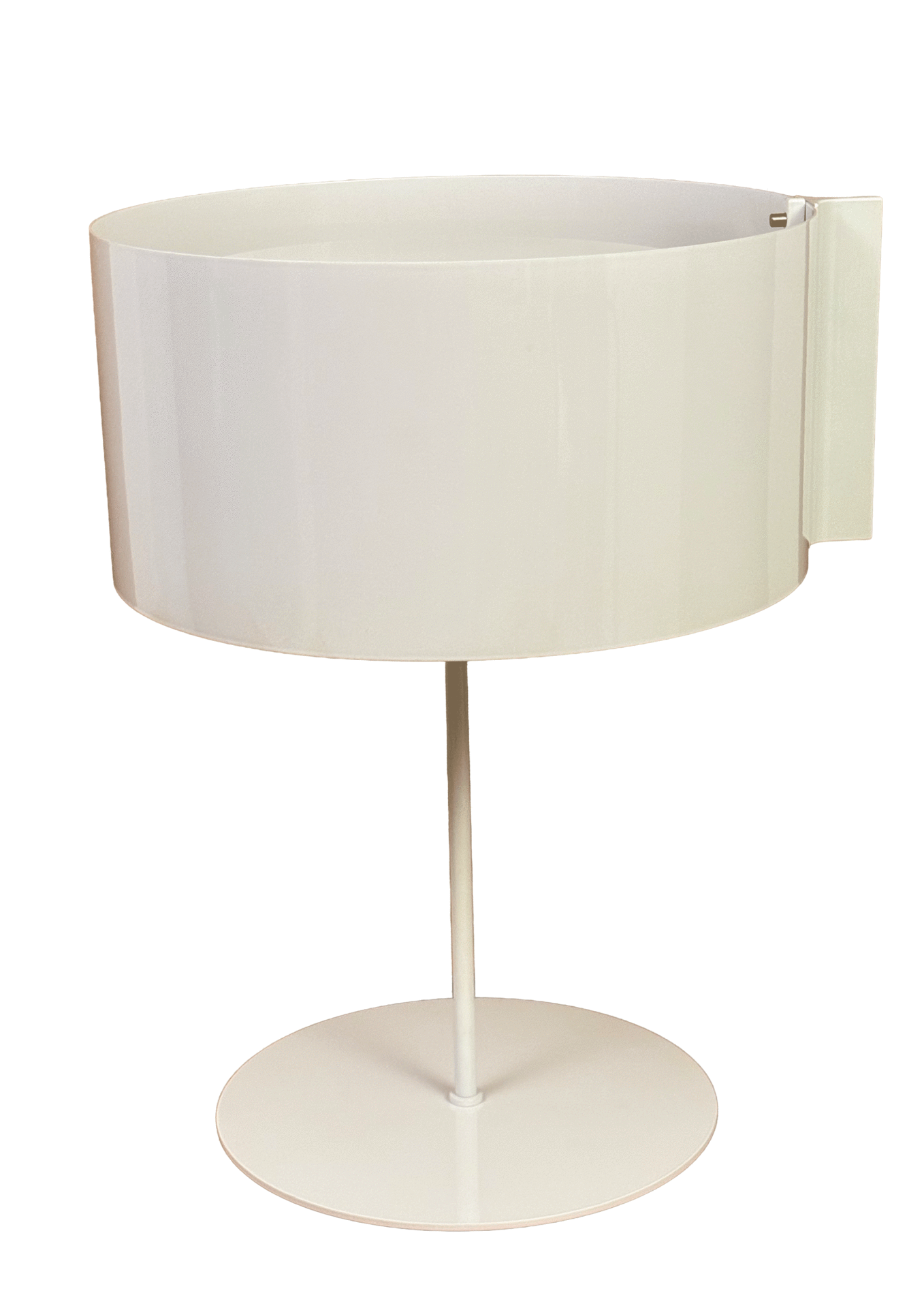 Un cylindre large, presque flottant, posé avec précision au sommet d’une tige fine.