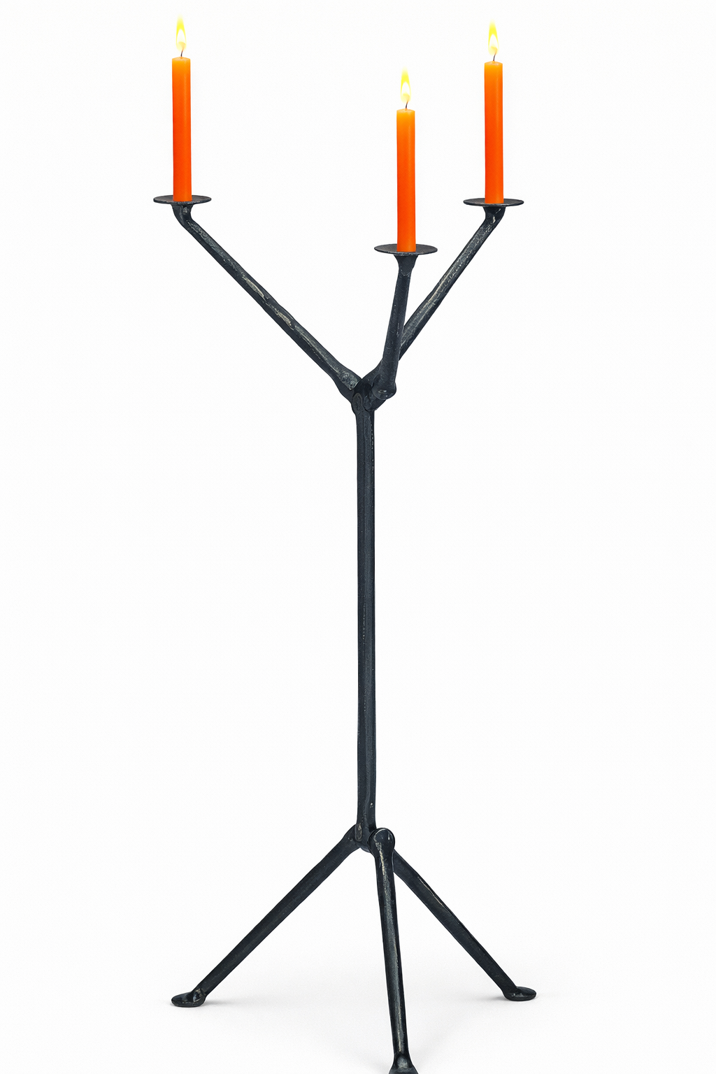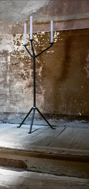 Bougeoir sculptural en acier forgé, au design graphique et minimaliste. Avec ses trois branches, il apporte une touche élégante et contemporaine à une table ou un intérieur, fidèle à l’esprit Officina : brut, authentique et intemporel.