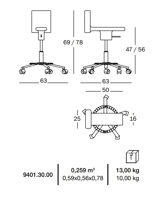 Équipée d’un piètement à roulettes, la chaise se déplace facilement et s’adapte aux environnements de travail flexibles. Son système de réglage en hauteur permet d’ajuster l’assise à la morphologie de l’utilisateur et à la hauteur du plan de travail, assurant confort et ergonomie au quotidien.