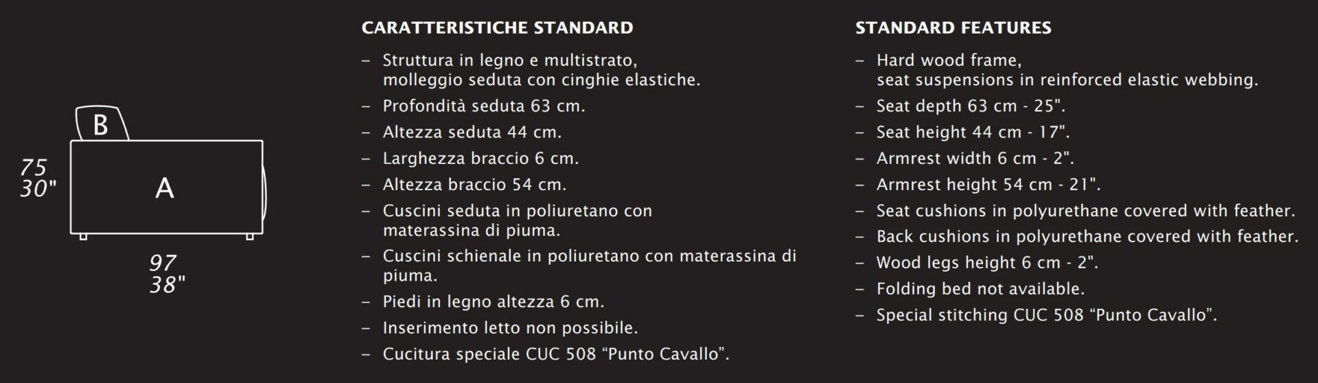 La conception repose sur un équilibre subtil entre structure et confort : une assise accueillante, des volumes généreux et un maintien étudié pour un usage quotidien. Les matériaux, sélectionnés avec soin, témoignent du savoir-faire artisanal italien propre à Gamma Arredamenti, tant dans le choix des cuirs que dans la qualité des assemblages.