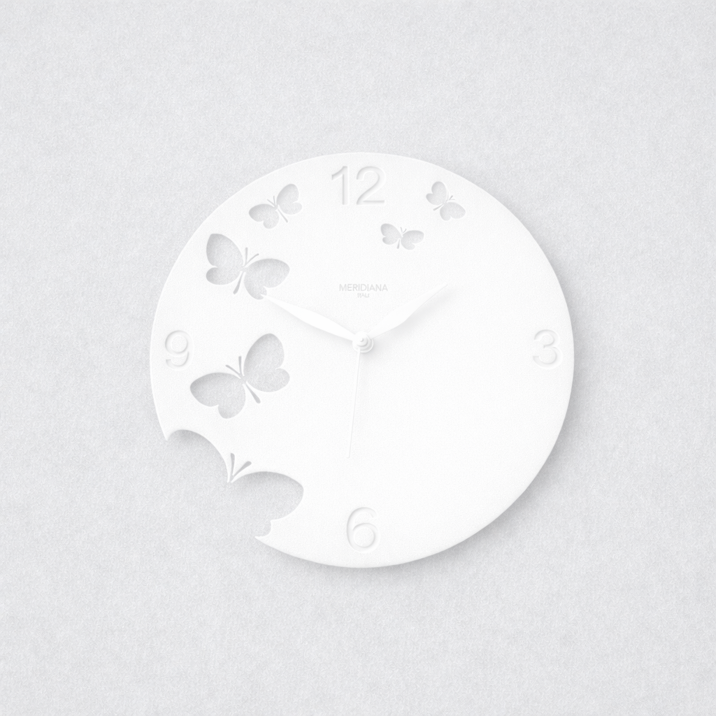 Cette horloge murale design séduit par son esthétique douce et aérienne. Disponible en 4 coloris, elle joue subtilement avec la lumière et les ombres grâce à ses découpes en forme de papillons, laissant apparaître le mur en arrière-plan pour un effet de profondeur élégant et contemporain.
