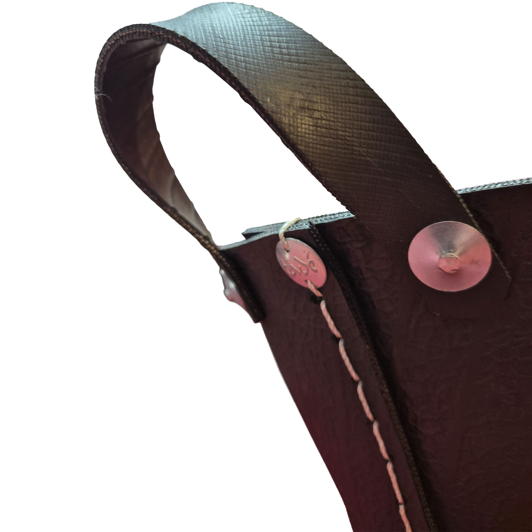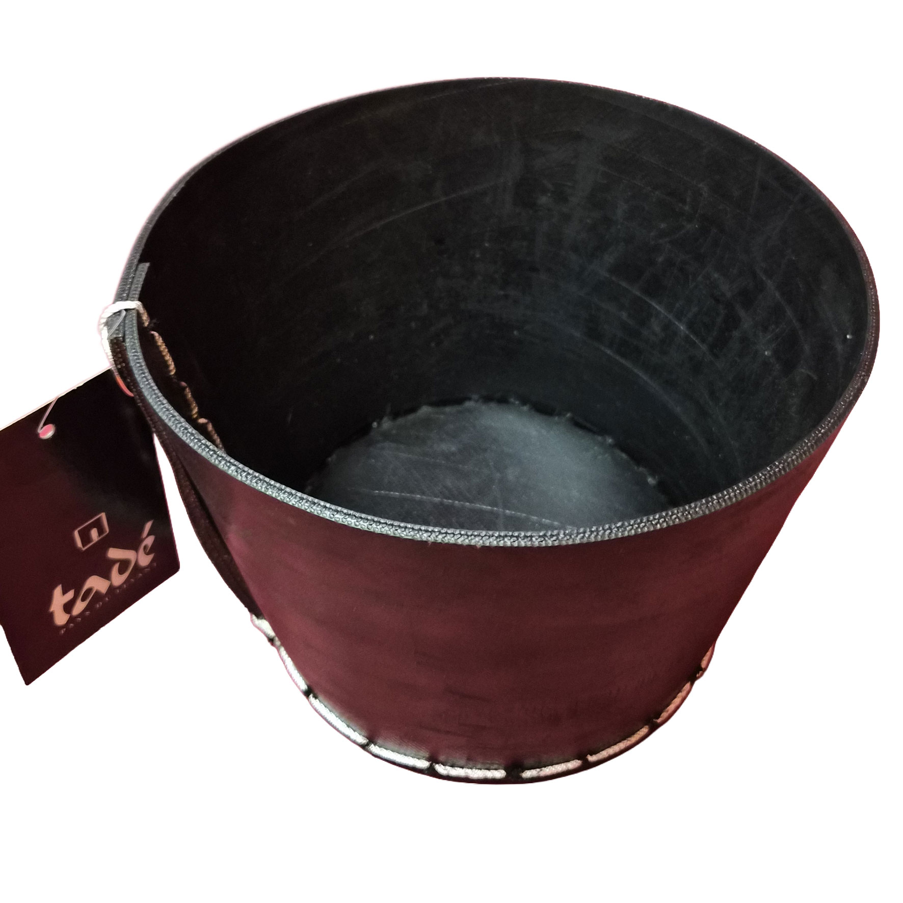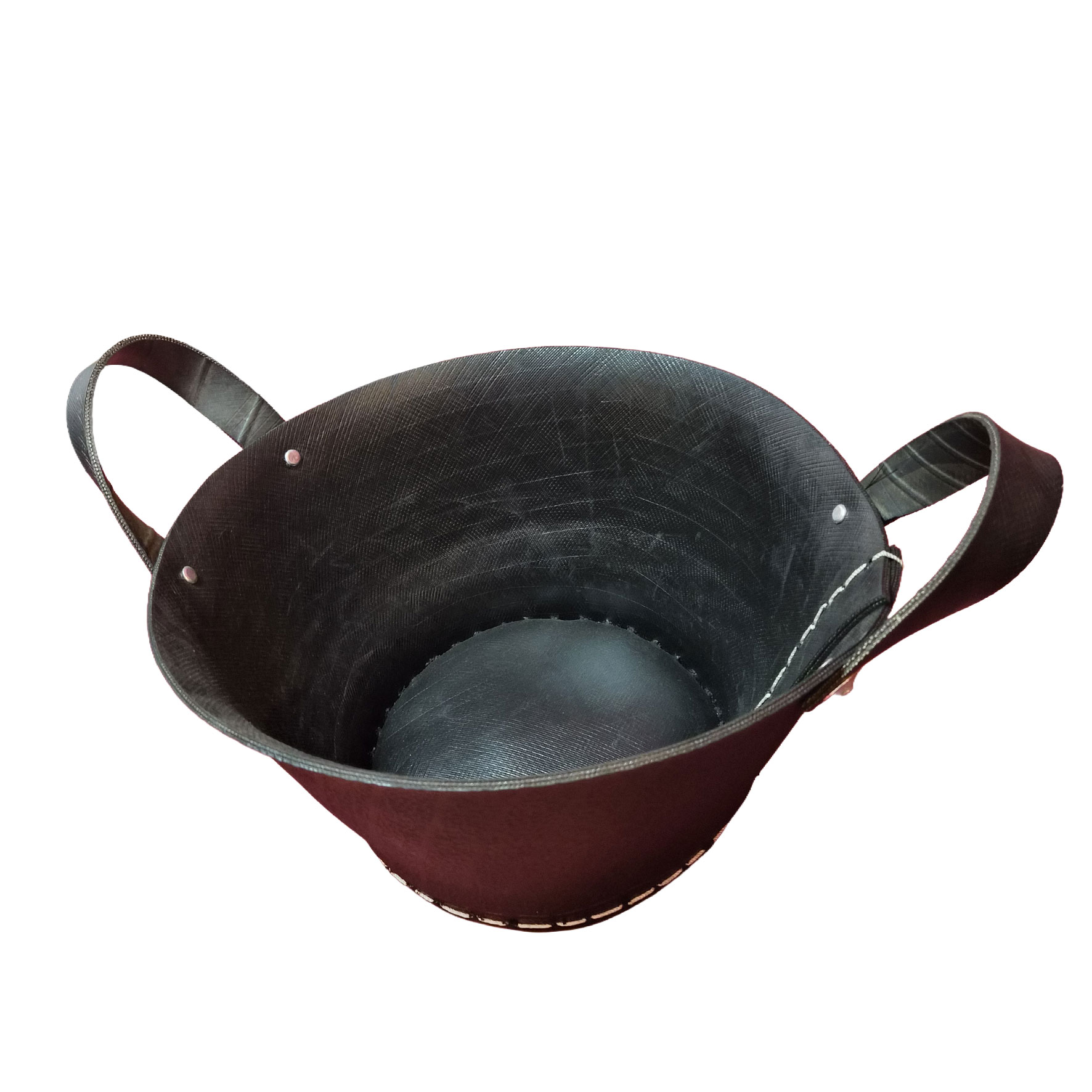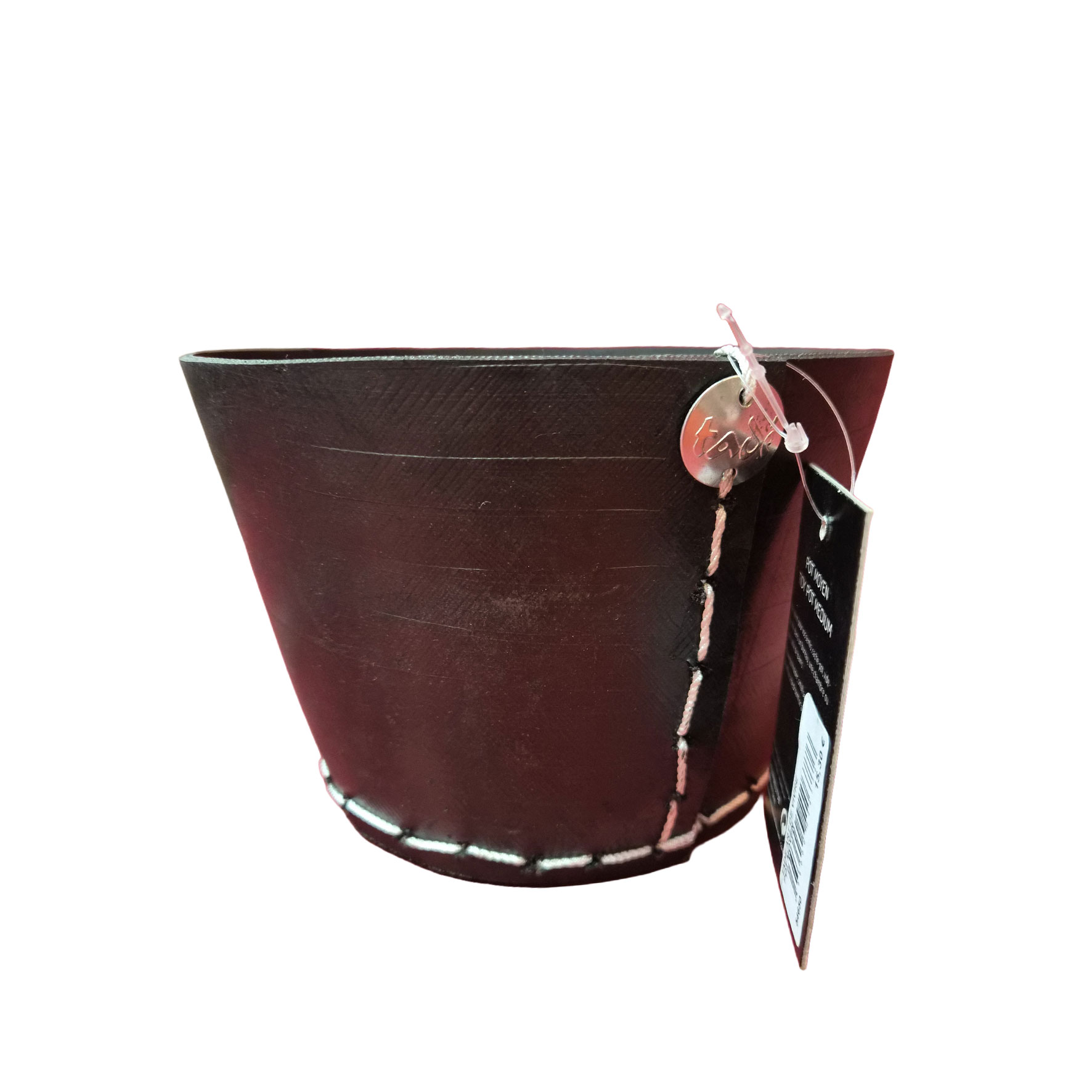 Fabriqués à partir de pneus recyclés, ces objets affichent une matière brute, texturée, presque sculpturale. Les surpiqûres apparentes et les détails métalliques renforcent leur caractère artisanal et affirmé. Chaque pièce porte en elle une seconde vie, transformée en élément décoratif durable et contemporain.
